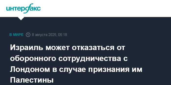 "Источники, близкие к правительству Нетаньяху, отметили, что Израиль ценит свои отношения с Великобританией, но недавние британские решения, включая потенциальное признание Палестины, поставили партнерство под угрозу", - говорится в публикации.