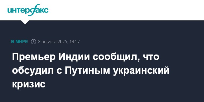 Москва. 8 августа. INTERFAX.RU - Премьер Индии Нарендра Моди заявил, что он и президент РФ Владимир Путин провели разговор, в ходе которого обсуждали события на Украине.