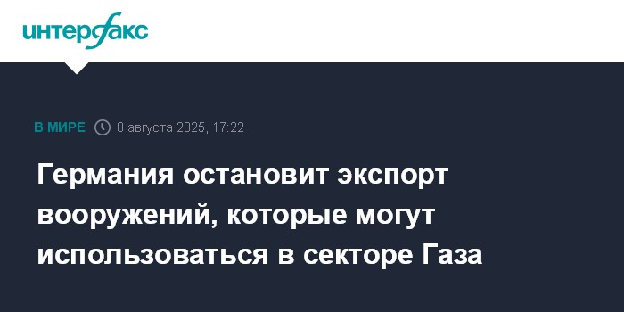 Москва. 8 августа. INTERFAX.RU - Германия решила "до дальнейшего распоряжения" не экспортировать военное оборудование, которое может быть использовано в операции Израиля в Газе, заявил канцлер ФРГ Фридрих Мерц. Об этом сообщает AP.