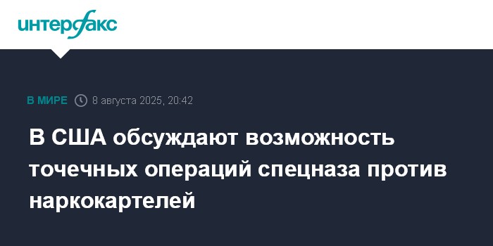 Москва. 8 августа. INTERFAX.RU - Командование США обсуждает варианты использовать силы спецопераций, наносить точечные удары и усилить разведывательное сотрудничество в рамках возможной кампании против латиноамериканских картелей, сообщает The Wall Street Journal (WSJ) со ссылкой на источники.