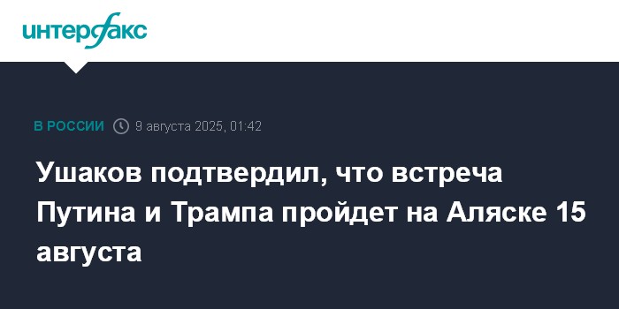 Ушаков подтвердил, что встреча Путина и Трампа пройдет на Аляске 15 августа