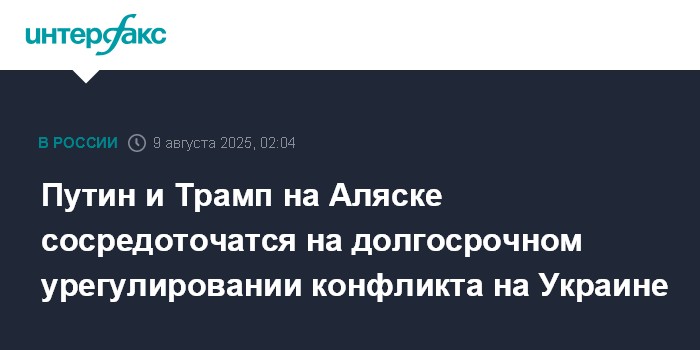Путин и Трамп на Аляске сосредоточатся на долгосрочном урегулировании конфликта на Украине