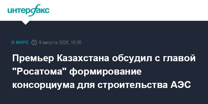 Москва. 9 августа. INTERFAX.RU - Премьер-министр Казахстана Олжас Бектенов встретился с генеральным директором госкорпорации "Росатом" Алексеем Лихачёвым после начала инженерно-изыскательных работ в преддверии строительства первой в республике АЭС, сообщила пресс-служба казахстанского правительства.