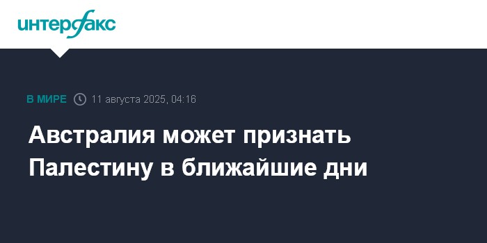 Москва. 11 августа. INTERFAX.RU - Австралия планирует признать государство Палестина в ближайшие дни, сообщает газета Sydney Morning Herald со ссылкой на осведомленные источники.
