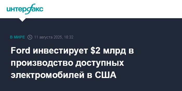Ford инвестирует $2 млрд в производство доступных электромобилей в США
