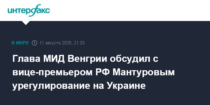 "Сегодня поговорил с вице-премьером Мантуровым о политической обстановке в преддверии саммита (президентов России и США - ИФ). Я подтвердил позицию Венгрии, согласно которой военный конфликт должен решаться не на поле боя, а за столом переговоров", - написал венгерский министр в соцсети Х.