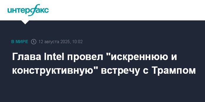 Москва. 12 августа. INTERFAX.RU - Президент США Дональд Трамп назвал "очень интересной" встречу с главным исполнительным директором Intel Corp. Лип-Бу Таном, состоявшуюся в Белом доме в понедельник.