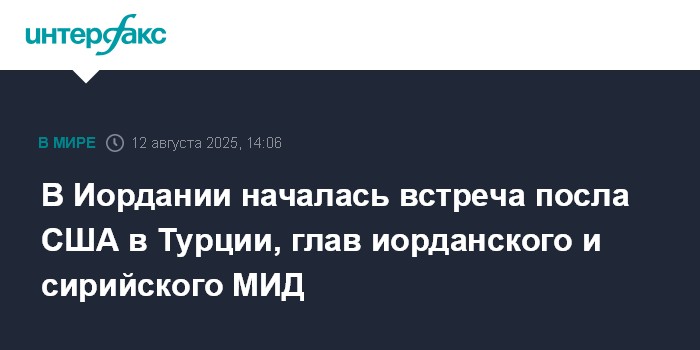 Москва. 12 августа. INTERFAX.RU - Министры иностранных дел Иордании и Сирии Айман Сафади и Асаад аш-Шибани во вторник начали переговоры с послом США в Турции, спецпосланником президента США в Сирии Томасом Барраком, сообщает "Аль-Арабийя".