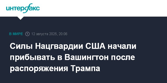 Москва. 12 августа. INTERFAX.RU - Военнослужащие Национальной гвардии США во вторник начали прибывать в Вашингтон для участия в операциях по борьбе с преступностью, сообщает Associated Press.