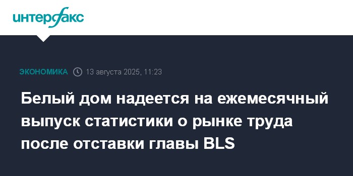 Москва. 13 августа. INTERFAX.RU - Белый дом рассчитывает на продолжение ежемесячной публикации данных Бюро статистики (BLS) Министерства труда США о количестве рабочих мест и безработице в стране, заявила журналистам пресс-секретарь Белого дома Кэролайн Левитт. Об этом сообщает Reuters