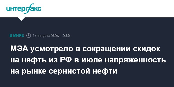 МЭА усмотрело в сокращении скидок на нефть из РФ в июле напряженность на рынке сернистой нефти