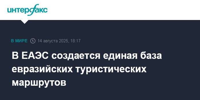 Москва. 14 августа. INTERFAX.RU - Евразийская экономическая комиссия формирует единую базу евразийских туристических маршрутов, сообщила заместитель директора департамента развития предпринимательской деятельности ЕЭК Люсине Багратуни.