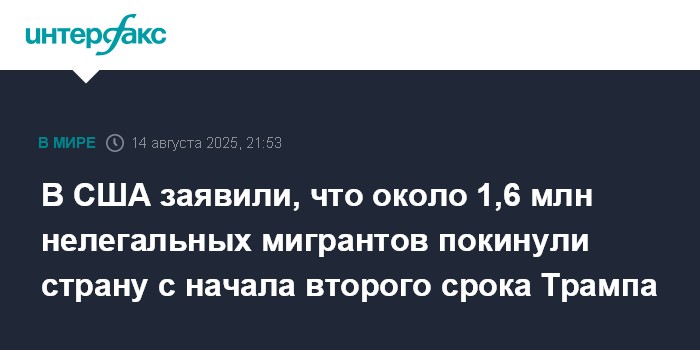 Москва. 14 августа. INTERFAX.RU - С начала президентского срока Дональда Трампа США покинули около 1,6 млн нелегальных мигрантов, заявила в четверг министр внутренней безопасности США Кристи Ноэм.