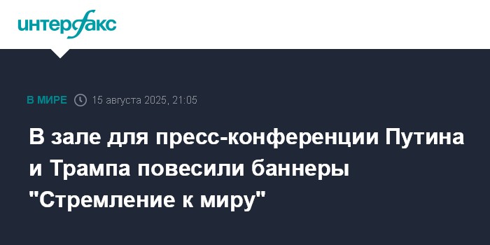 В зале для пресс-конференции Путина и Трампа повесили баннеры "Стремление к миру"