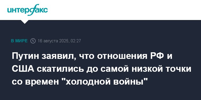 Москва. 16 августа. INTERFAX.RU - Отношения РФ и США скатились до самой низкой точки со времен "холодной войны", это не идет на пользу обеим странам и встреча лидеров назрела, заявил президент РФ Владимир Путин.