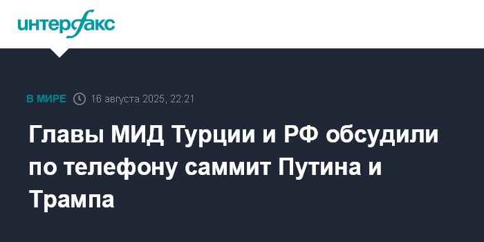 Позднее МИД РФ подтвердил, что Лавров и Фидан обсудили в телефонном разговоре российско-американскую встречу на высшем уровне 15 августа.