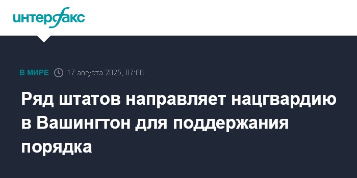 Москва. 17 августа. INTERFAX.RU - Губернатор штата Южная Каролина Генри Макмастер сообщил, что отправляет 200 бойцов нацгвардии в Вашингтон, чтобы оказать помощь федеральным войскам в соблюдении законности.