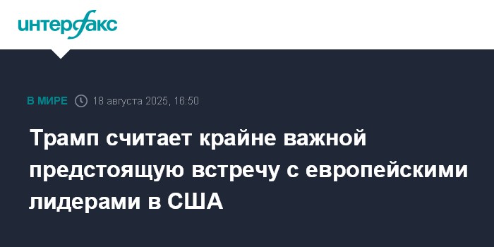 Москва. 18 августа. INTERFAX.RU - Президент США Дональд Трамп назвал понедельник, 18 августа важным днем в связи с прибытием в Вашингтон лидеров ряда европейских стран для обсуждения урегулирования на Украине.