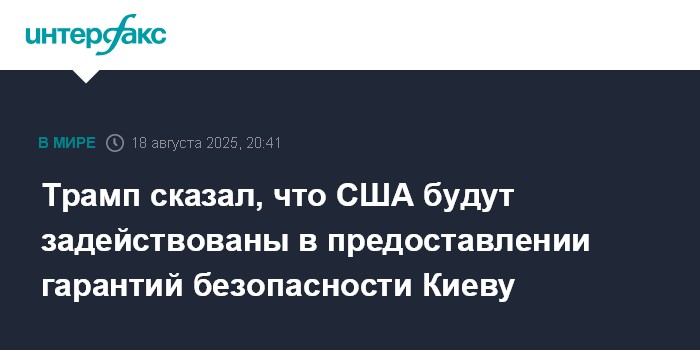 Москва. 18 августа. INTERFAX.RU - Вашингтон примет участие в инициативе по предоставлению гарантий безопасности Украине, заявил в понедельник президент США Дональд Трамп.