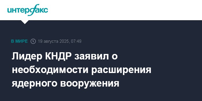 Москва. 19 августа. INTERFAX.RU - Лидер Северной Кореи Ким Чен Ын осудил "враждебные" военные учения Южной Кореи и США и призвал к радикальному расширению ядерного вооружения.