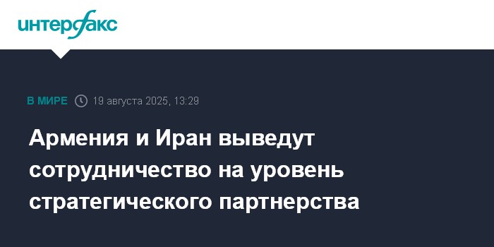 Москва. 19 августа. INTERFAX.RU - Ереван и Тегеран намерены вывести сотрудничество двух стран на уровень стратегического партнерства, заявил премьер-министр Армении Никол Пашинян на совместном брифинге с президентом Ирана Масудом Пезешкианом.