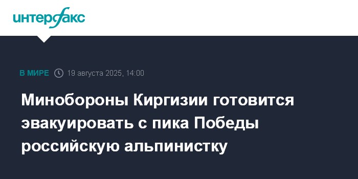 Москва. 19 августа. INTERFAX.RU - Министерство обороны Киргизии готовится эвакуировать российскую альпинистку Наталью Наговицыну, которая седьмые сутки находится на пике Победы на высоте 7,2 тыс. метров с переломом ноги, сообщил во вторник "Интерфаксу" пресс-секретарь киргизского оборонного ведомства Алмаз Сарбанов.