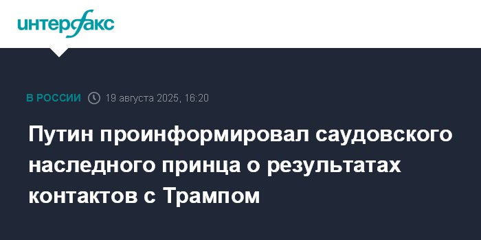 Путин проинформировал наследного принца "об основных результатах недавних контактов с президентом США Дональдом Трампом", говорится в сообщении.
