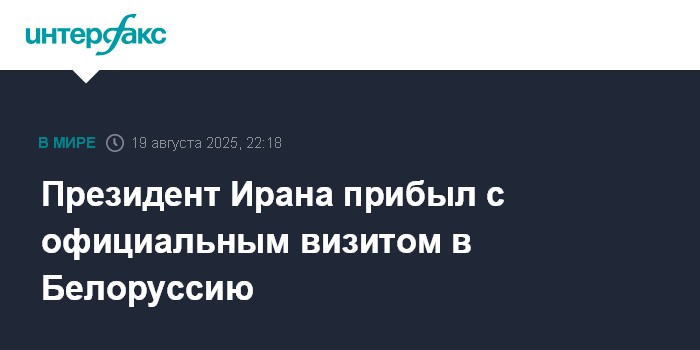 Москва. 19 августа. INTERFAX.RU - Президент Ирана Масуд Пезешкиан прибыл с официальным визитом в Минск, где встретится с президентом Белоруссии Александром Лукашенко, сообщает белорусское госагентство БелТА.