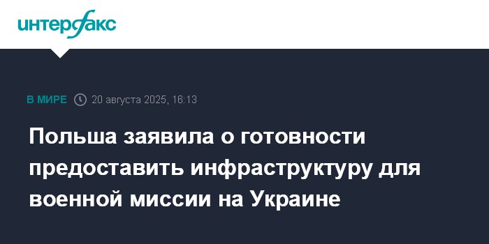 Москва. 20 августа. INTERFAX.RU - Польша готова предоставить инфраструктуру и логистику для военнослужащих союзников в случае их решения направить контингенты на Украину, при этом непосредственно польские солдаты в миссии участвовать не будут, заявил в среду вице-премьер, министр национальной обороны Польши Владислав Косиняк-Камыш.