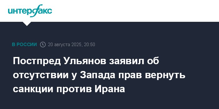 Постпред Ульянов заявил об отсутствии у Запада прав вернуть санкции против Ирана
