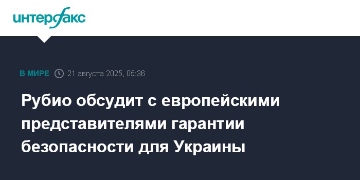 Москва. 21 августа. INTERFAX.RU - Госсекретарь США Марко Рубио, который также является советником президента по безопасности, как ожидается, проведет в четверг переговоры с европейскими представителями по выработке предлагаемых гарантий безопасности для Украины, сообщает The New York Times.