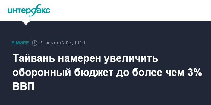 Москва. 21 августа. INTERFAX.RU - Власти Тайваня объявили о планах увеличить оборонный бюджет на 2026 год, сообщает в четверг телеканал Channel News Asia.
