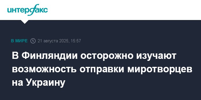 Москва. 21 августа. INTERFAX.RU - Правительство Финляндии с осторожностью рассматривает вопрос о возможном участии финских военных в операциях по обеспечению гарантий безопасности Украины.