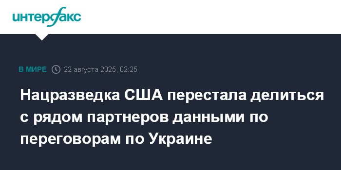 Москва. 22 августа. INTERFAX.RU - США прекратили делиться разведданными по российско-украинскому переговорному процессу с партнерами по альянсу "Пять глаз", передает телеканал CBS со ссылкой на источники.