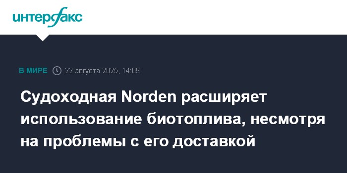 Судоходная Norden расширяет использование биотоплива, несмотря на проблемы с его доставкой