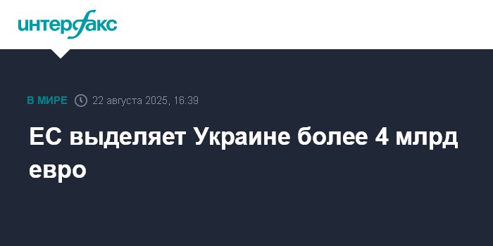 Москва. 22 августа. INTERFAX.RU - Еврокомиссия (ЕК) объявила в пятницу о выделении Украине 4,05 млрд евро.