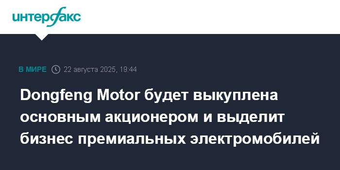 Сделка предусматривает выделение в самостоятельную компанию подразделения Dongfeng Motor по выпуску премиальных электромобилей (Voyah). Планируется, что Voyah получит листинг на Гонконгской бирже.