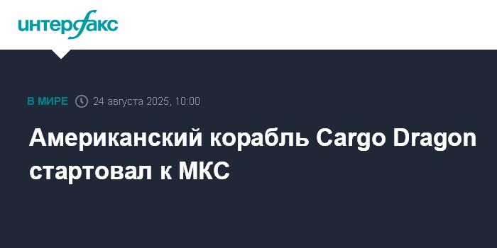 Москва. 24 августа. INTERFAX.RU - Очередной многоразовый грузовой космический корабль Cargo Dragon компании SpaceX в воскресенье стартовал к Международной космической станции (МКС), сообщило НАСА.