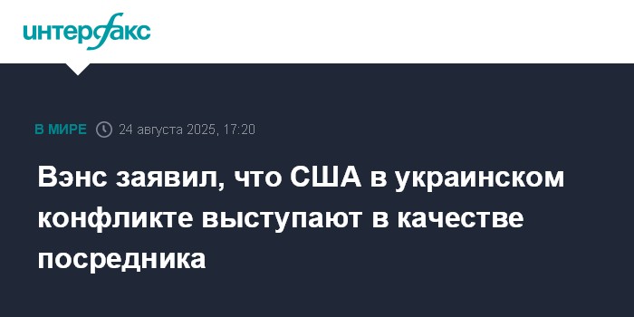 Москва. 24 августа. INTERFAX.RU - Администрация США стремится играть роль посредника для украинского урегулирования и не навязывает решения сторонам конфликта, заявил в воскресенье вице-президент США Джей Ди Вэнс.