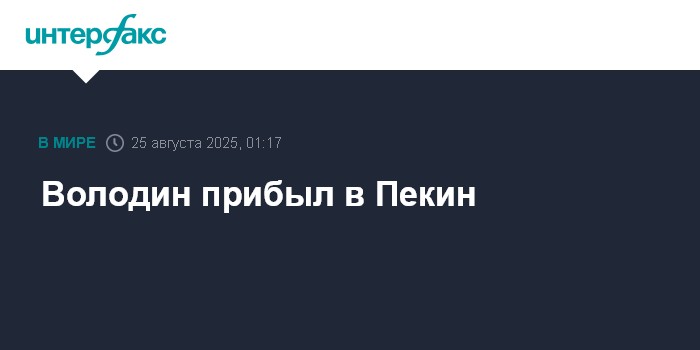 Москва. 25 августа. INTERFAX.RU - Председатель Государственной Думы Вячеслав Володин во главе парламентской делегации РФ в понедельник прибыл в Китай с официальным визитом по приглашению председателя Постоянного комитета Всекитайского собрания народных представителей (ВСНП) Чжао Лэцзи.