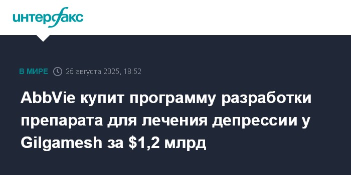 AbbVie купит программу разработки препарата для лечения депрессии у Gilgamesh за $1,2 млрд