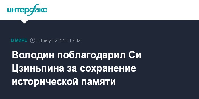 Володин поблагодарил Си Цзиньпина за сохранение исторической памяти