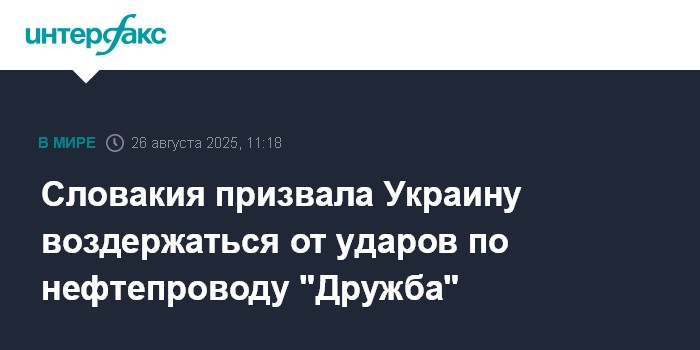 Москва. 26 августа. INTERFAX.RU - Министр иностранных дел Словакии Юрай Бланар в телефонных разговорах с представителями украинских властей призвал Киев воздержаться от ударов по инфраструктуре нефтепровода "Дружба"