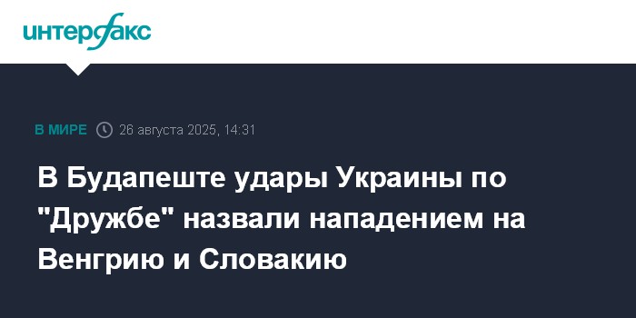 Москва. 26 августа. INTERFAX.RU - Нападением на Венгрию и Словакию назвал глава венгерского МИД Петер Сийярто удары Украины по инфраструктуре нефтепровода "Дружба", по которому нефть поступает из России в эти две страны.