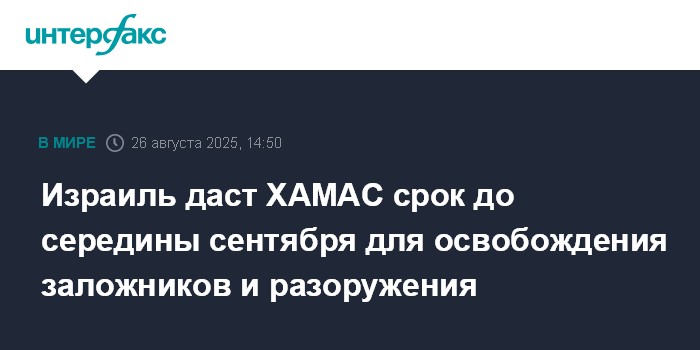 Израиль даст ХАМАС срок до середины сентября для освобождения заложников и разоружения