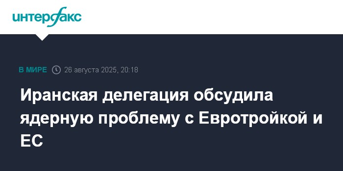 Москва. 26 августа. INTERFAX.RU - Представители Ирана и Франции, Германии, Великобритании и ЕС провели встречу для обсуждения иранской ядерной проблемы, сообщил во вторник заместитель главы МИД Ирана Казем Гарибабади.