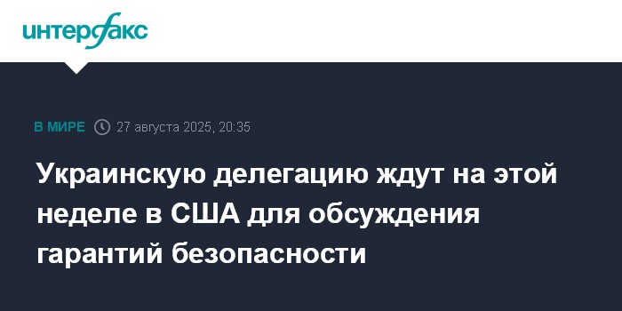 Москва. 27 августа. INTERFAX.RU - Украинская делегация прибудет в течение этой недели в США на встречу со спецпосланником американского президента Стивом Уиткоффом, планируется обсудить тему гарантий безопасности для Киева и идею саммита России и Украины, сообщает в среду Bloomberg со ссылкой на источник.