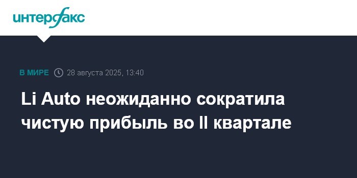 Москва. 28 августа. INTERFAX.RU - Китайский производитель электромобилей Li Auto неожиданно сократил чистую прибыль на 0,9% во втором квартале.