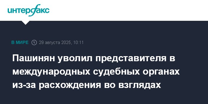 Пашинян уволил представителя в международных судебных органах из-за расхождения во взглядах