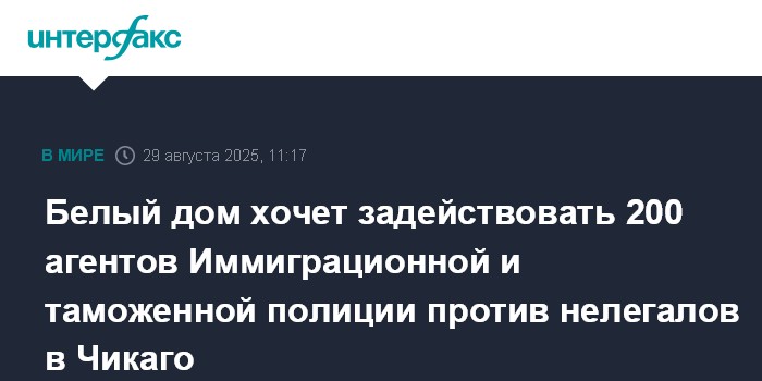 Москва. 29 августа. INTERFAX.RU - Власти США планируют привлечь 200 сотрудников Иммиграционной и таможенной полиции (ICE) для рейдов против нелегальных иммигрантов в Чикаго, сообщает The New York Times (NYT) со ссылкой на оказавшиеся в распоряжении газеты документы.